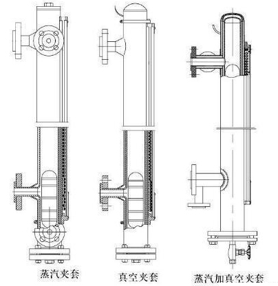 一般夾套保溫都是把保溫裝置按在液位計主體管道的周圍,分為兩種方式:一種是電伴熱(也叫電加熱)裝置,通過纏繞在夾套磁翻板液位計主管道上的電阻絲對管道進行加熱使管道內的液體處在冰點以上,保證罐體內的液體不會因為溫度過低而結冰;另一種是蒸汽夾套保溫,把一空夾層固定在主體管道的外圍,對空夾層里面輸入溫度高的蒸汽,利用高溫蒸汽對主體管道內部的介質進行熱力傳遞,達到保溫作用。
