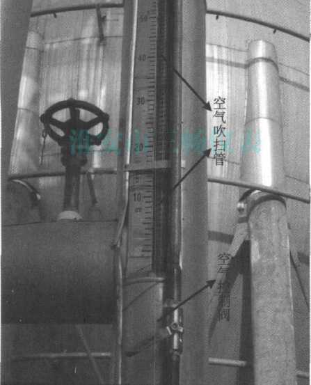 為了保證乙烯球罐安全穩(wěn)定運(yùn)行,投用初期磁翻板液面計(jì)結(jié)冰就很嚴(yán)重,開始以為是由于施工時(shí)保冷材料沒有安裝好、保冷材料的厚度不夠等原因造成的,因此對(duì)保冷材料全部重新安裝并增加了保冷材料的厚度,但效果不明顯。后又組織崗位操作工對(duì)耐酸堿磁翻板液位計(jì)上的冰定期進(jìn)行人工清理,由于乙烯球罐容積大(1500m³),液位計(jì)長約12米,清理難度非常大,在清除作業(yè)過程中涉及高空等危險(xiǎn)作業(yè),增加了員工的工作危險(xiǎn)性和勞動(dòng)強(qiáng)度,而且經(jīng)過人工清理的液位計(jì)在運(yùn)行3~4小時(shí)后,又開始掛霜結(jié)冰,運(yùn)行周期太短。另外每次在清除結(jié)冰的過程中,都會(huì)對(duì)磁翻板液面計(jì)和閥座有所損傷,*終可導(dǎo)致磁翻板液面計(jì)損壞報(bào)廢。后來又嘗試切斷液面計(jì)根部閥切斷,采用自然化冰的方式來清除掛冰,這樣雖然減小了操作工的勞動(dòng)強(qiáng)度,但這種辦法除冰時(shí)間太長,對(duì)安全生產(chǎn)不利。為了徹底解決磁翻板掛冰的現(xiàn)象,經(jīng)過反復(fù)論證,技術(shù)人員提出用工廠空氣進(jìn)行吹掃的方案并在其中一具乙烯球罐上進(jìn)行試驗(yàn)。通過試驗(yàn)發(fā)現(xiàn)用工廠空氣連續(xù)吹掃掛冰的液位計(jì),基本能夠徹底解決耐酸堿磁翻板液位計(jì)掛冰。