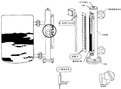 二、液位計現場投用時,要特別留意應先翻開上部閘閥,后翻開下部閘閥。這是由于液位計連通管的底部裝有維護浮子的止推彈簧,否則,大差壓的作用可能撞碎浮子招致液位計無法運用。