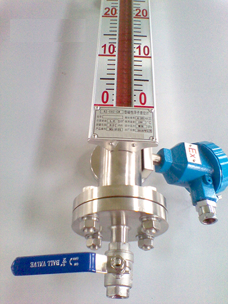 在浮子液位計上安裝變送器,通過浮子上下移動,經(jīng)磁耦合作用使導(dǎo)桿內(nèi)測量元件依次動作,獲得電阻信號變化,轉(zhuǎn)換成0~10mA或4~20mA的標準信號輸出,與顯示儀表或計算機連接,達到遠傳目的。