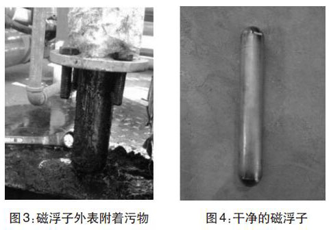 經過兩年多運行,污水罐內可能沉淀污泥雜質導致液位計示數不準?,F場拆卸液位計,并且對浮球和磁浮子進行清洗。(圖3-圖4)