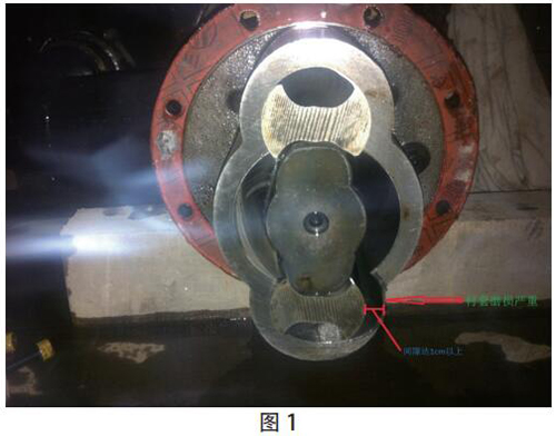 2015 年 8 月 10 日 17:50 機組在運行過程中“機組高位油箱事故低油位動作”事故停機?,F場檢查發現機組高位油箱油位為 60mm,低于下限值 90mm。進一步檢查發現,稀油站 2# 低壓油泵空轉,沒有打油,振動、聲音較大。18:18 維護人員對 2# 低壓油泵進行了搶修拆解。發現油泵從動螺桿與襯套間隙過大,達 1cm 以上,襯套磨損嚴重(見圖 1)。油泵損壞,無法打油。