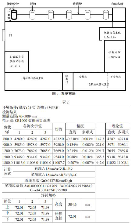 在本率定系統中,采用磁致伸縮式高精度液氯液位計,精度為±0.01mm。采用高低溫交變濕熱試驗箱進行溫度傳感器率定。數據采集系統為美國坎貝爾 CR1000 自動數據采集系統,通過控制電腦,將設定好的頻率裝載入采集系統,自動加水和放水以及數據采集,同時數據自動保存和計算。