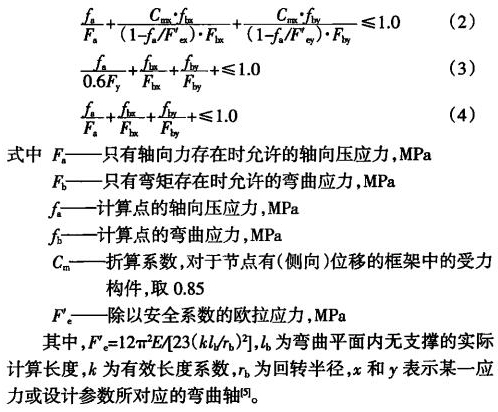 (2)UC值是美國ANSI/AISC《鋼結構設計手冊》針對鋼結構物體承受壓縮彎曲等多種組合載荷聯合作用時所采用的綜合機械強度性能的度量指標。