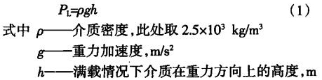 (1)頂裝磁翻板液位計主要用來儲存配置好的鉆井液,在單罐滿載的情況下,內部介質對罐體內壁存在液柱靜壓力作用。液柱靜壓采用式(1)計算。