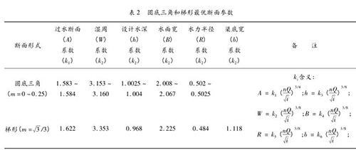 此外,U 型非常好的斷面為圓底直角時,設計水位線上在圓心上。斷面參數見表 2。