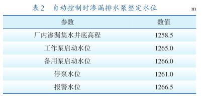 呼蓄電站廠房排水系統(tǒng)包括地下廠房滲漏排水系統(tǒng)、機(jī)組檢修排水系統(tǒng)。地下廠房滲漏排水系統(tǒng)設(shè)有1個(gè)滲漏集水井,有效容積364 m 3 ,設(shè)5臺(tái)滲漏排水泵,3運(yùn)2備,系統(tǒng)*大滲漏總排水量為2250m 3 /h。滲漏排水泵正常運(yùn)行時(shí)由廠內(nèi)滲漏排水控制盤(pán)PLC或監(jiān)控系統(tǒng)自動(dòng)控制啟停,也可就地通過(guò)每臺(tái)泵的啟動(dòng)柜手動(dòng)啟停。自動(dòng)控制時(shí)整定水位見(jiàn)表2。廠房排水系統(tǒng)設(shè)備主要參數(shù)見(jiàn)表3。