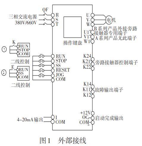 按面板啟動鍵,(外控時用端子信號)起動器開始運行,電動機平穩加速電流無變說明參數設置合適。運行后可按面板停止鍵(或外控時用端子信號)執行停機。zui后設為外控。