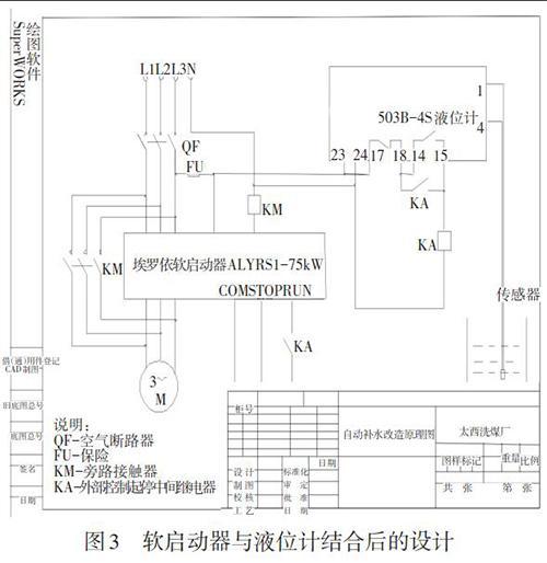 為了降低崗位司機的勞動強度,選煤廠利用水源井原有的埃羅依軟啟動器和XMTA-503B-4S液位計,通過技術改造,實現了無人開啟、停止自動化和自動上水,優化了工藝。