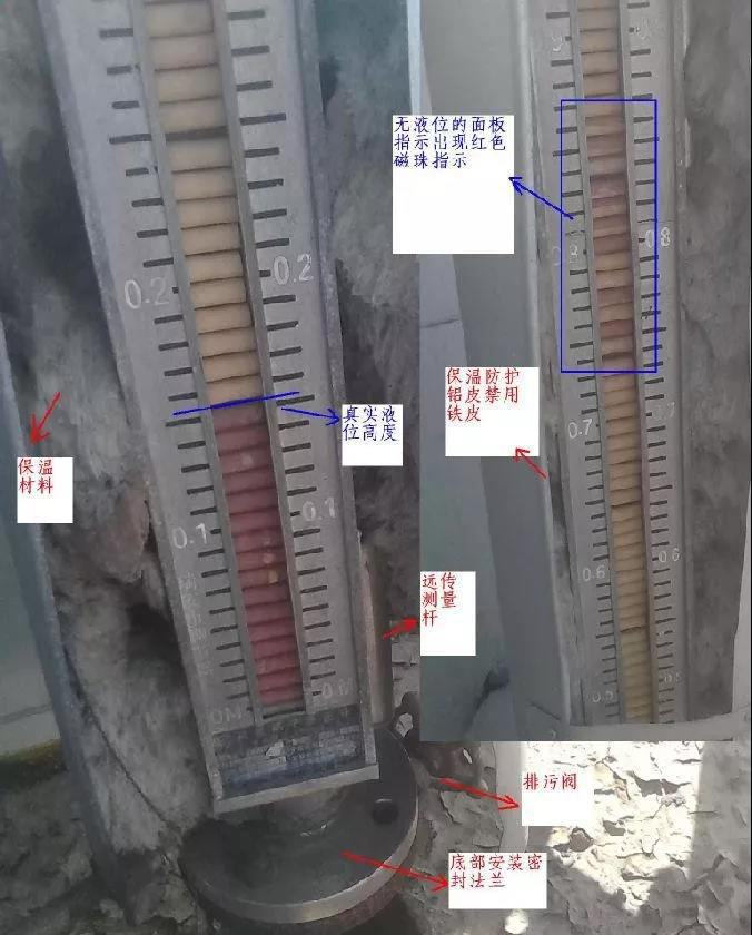 現場使用的浮子液位計常常會出現面板的磁珠指示不準確,液位指示不連續,代表液位的紅色磁珠中有白色顯示,空液位的白色磁珠中有一部分是紅色液位指示,情況糟糕的時候紅白磁珠雜亂不堪。