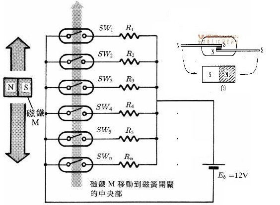 磁變送器(干簧管變送器):與磁開關的原理相似,它是捆綁在浮筒外面。當浮筒里面的浮子隨著液位變化時,上下移動,浮子中的磁鋼所在的位置將改變干簧管中磁開關的狀態(閉合),只有在磁鋼作用范圍內的干簧管閉合,其它都處于開路狀態,從而改變回路的電阻值,或者說是改變了輸出回路的阻值。浮子的位置相當與電位器的滑動點,隨著浮子的位置變化,引起上下電阻的抽頭(上下電阻值)變化,液位越低,電阻值越大,越高電阻越小(出線在頂部)。由于回路是恒(定電)流,再通過電流/電壓轉換,進而可以轉化為4~20mA/HART 等信號。液位變化,液位旁邊的磁開關閉合,電阻值變化,輸出電壓隨之變化。