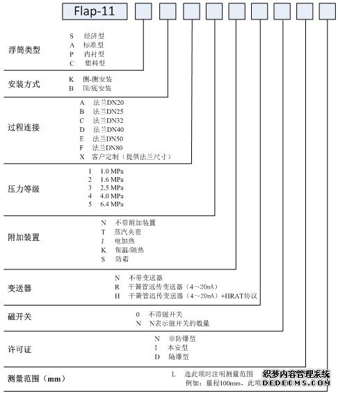 圖為Flap-11系列磁性液位計(jì)選型表