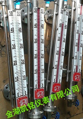 根據浮力原理,浮子在測量管內隨液位的升降而上、下移動,浮子內的永久磁鋼通過耦合作用,驅動紅、白色翻柱翻轉180°,液位上升時翻柱由白色轉為紅色,下降時由紅色轉為白色,從而實現液位指示。