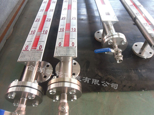 根據浮力原理,浮子在測量管內隨液位的升降而上、下移動,浮子內的永久磁鋼通過耦合作用,驅動紅、白色翻柱翻轉180°,液位上升時翻柱由白色轉為紅色,下降時由紅色轉為白色,從而實現液位指示。