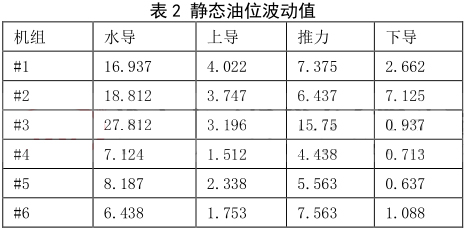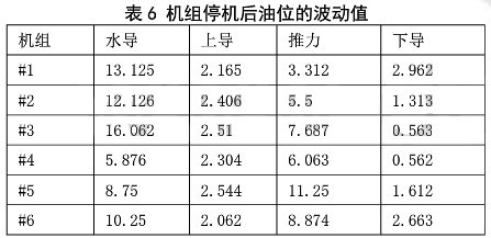 表 6 機組停機后油位的波動值