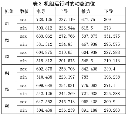 表 3 機組運行時的動態(tài)油位