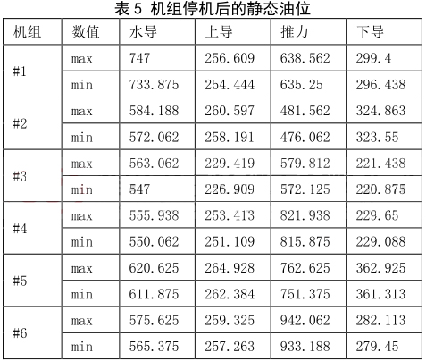 表 5 機組停機后的靜態(tài)油位