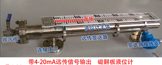 防凍液液位計主體外的翻板箱受主體內浮子(具有定向磁性源,按不同介質和壓力針對研制)的作用促其翻板翻動并顯示紅白顏色,并隨浮子的移動指示不同的液面高度。在指示器左側配有醒目的刻度標尺,從而使液位的指示顯得更加清晰。那么,防凍液液位計帶遠傳又是如果實現信號遠傳輸出的呢?