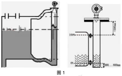 如圖1所示,導波雷達液位計是依據(jù)時域反射原理(TDR)為基礎的雷達液位計,雷達液位計的電磁脈沖以光速沿鋼纜或探棒傳播,當遇到被測介質表面時,雷達液位計的部分脈沖被反射形成回波并沿相同路徑返回到脈沖發(fā)射裝置,發(fā)射裝置與被測介質表面的距離同脈沖在其間的傳播時間成正比,經計算得出液位高度。某電廠經過技術改造采用波導雷達后,液氨液位波箱現(xiàn)象消失,儲罐運行良好。